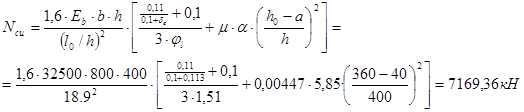 Находим значение случайного эксцентриситета: еа>h/30=400/30=13,33 мм; еа>H2/700=7560/700=10.08 мм; еа>10 мм. Принимаем еа=13,33 мм. Тогда соответствующие значения изгибающих моментов будут равны: