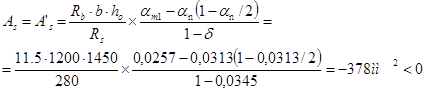 αm1= N·е/(Rb·b·h02) = 626,0192·10³·1193/(11,5·1200·14502) = 0,0257;