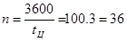 Определим число циклов за час работы