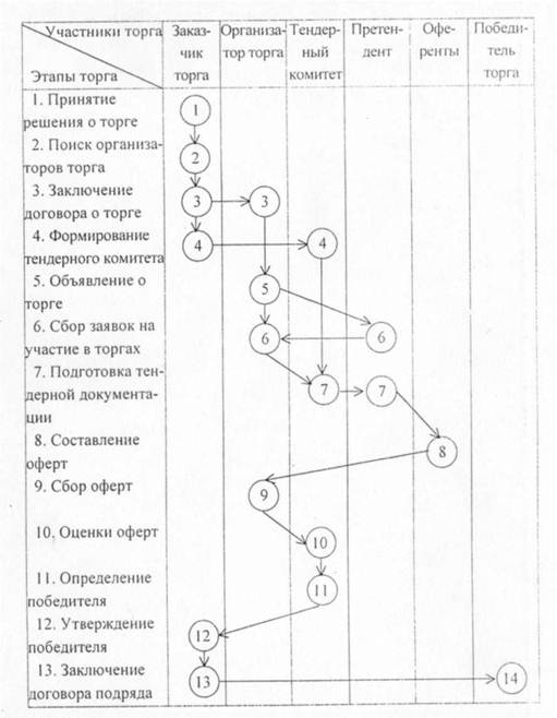 Этапы подготовки и проведения торгов и последовательность действий их участников иллюстрируются рис. 1.