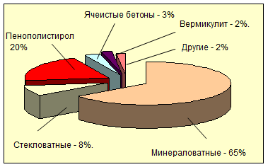 Доля других стеновых теплоизоляционных материалов в теплоизоляционном производстве не превышает 6%: