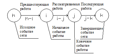 События - это промежуточный или окончательный результат одной или нескольких работ. События изображаются кружками или др. геометрическими фигурами, внутри которой указывается определенный номер - код события. Общая схема кодирования работ и события сетевого графика может быть представлена в следующем виде.