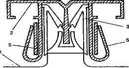1 - пленка; 2 - багет; 3 - гарпун полужесткий; 4 - накладка; 5 - нагубник
