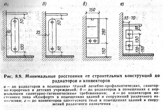 Окрашивание отопительных приборов в светлые тона уменьшает теплопередачу по сравнению с неокрашенными на 1—2%, а при покрытии алюминиевой краской — до 25%; при окраске приборов в темные тона теплопередача увеличивается на 3—5%. Отопительные приборы размещают в помещении так, чтобы в системе было наименьшее число стояков и ответвления к ним имели небольшую длину.
