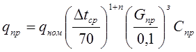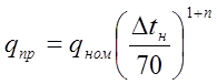 Располагая величиной q ном, можно определить расчетную плотность теплового потока отопительного прибора q пр, Вт/м2, для условий работы, отличных от стандартных, по формулам: