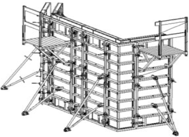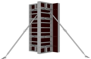 Опалубка колонн - комплект опалубки колонн для бетонирования на шкворнях (щит, шкворень, подкос, кронштейн), сечение колонн от 20×20 см до 100×100 см (колонны могут быть в плане прямоугольные). Облегчённые алюминиевые опалубочные щиты для колонн позволяют быстро монтировать и снимать опалубочные конструкции. Для опалубки колонн применяются универсальные щиты размером 0,7×3.0 м, 0,8×3,0 м , 1,2×3,0 м и специальные шкворни. Сборка щитов в «мельницу» позволяет изменять размеры бетонируемых колонн от 0,2 до 1,0 м.