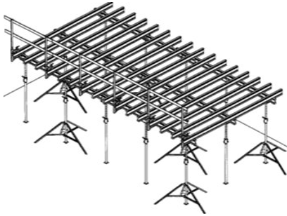 Опалубка перекрытий - это набор опалубки для потолочных перекрытий любых размеров и конфигураций, с возможностью комбинировать детали и компоненты в процессе работы. Опалубка перекрытий позволяет производить опалубливание перекрытий любой конфигурации в плане прямоугольной, консольной и даже круглой. Причём, для этого достаточно стандартного набора и не требуется ни одной специальной детали. Продольные и поперечные балки опалубки перекрытий можно телескопообразно монтировать, что обеспечивает быструю подгонку под любую конфигурацию, высоту и нагрузку перекрытий.