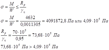 Внутренние усилия M,N при основном сочетании нагрузок.