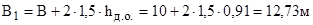 В1- ширина насыпи поверху, на уровне дна корыта, м;