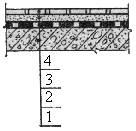 1- ж/б плита 220 2- оклеечная гидроизоляция 10 3- стяжка из цементного раствора 30 4- керамическая плитка на цементном растворе 15 |