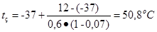 Теперь определим температуру, с которой воздух поступает в помещение от тепловой завесы по формуле