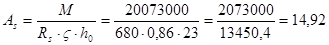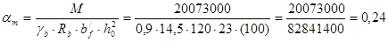 По табл. 3.1 находят ξ = 0,26; x=ξh0=0.26*23=5.98≤6 см — нейтральная ось проходит в пределах сжатой полки; ζ = 0,86.