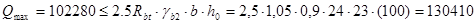 Расчет прочности плиты по сечению, наклонному к продольной оси, Q=102.28 кН. Проверяют, требуется ли поперечная арматура по расчету. Условие: