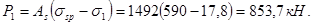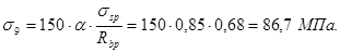 . Напряжение в бетоне при обжатии в соответствии с формулой
