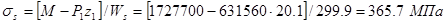 Вычисляют сжимающее напряжение в бетоне на уровне центра тяжести напрягаемой арматуры от усилия обжатия Р1 и с учетом изгибающего момента от веса плиты