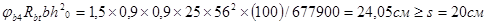 Шаг поперечных стержней по конструктивным условиям s=h/3=60/3=20см. На всех приопорных участках длиной l/4 принят s=20см, в средней части пролета шаг s=3h/4=3*60/4=45см.