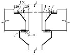 1) арматурные выпуски из ригеля и колонны; 2) ванная сварка; 3) вставка арматуры; 4) стальные закладные.