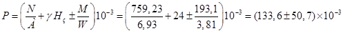 6.3 Определение максимальных краевых напряжений на грунт от расчетных нагрузок