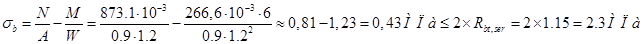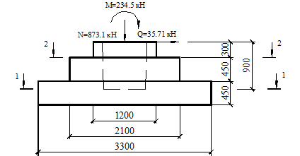 Усилия у обреза фундамента по наибольшему ядровому моменту [табл.6,1]: M = -234,5 кНм; N = 873,1 кН; Q = 35,71 кН
