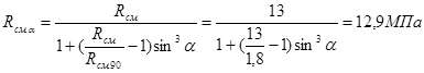 - расчетное сопротивление древесины смятию под углом к волокнам.