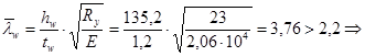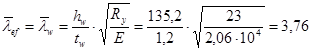 По п. 7.3 СНиП II-23-81, так как`lw = 3,76 > 2,5, то проверка устойчивости стенок обязательна. Проверку будем вести по п. 7.4 – 7.6 СНиПа II-23-81*.