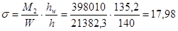 Проверим местную устойчивость стенки в сечении 2-2, для этого определяем средние значения M2 и Q2 на расстоянии х2 = 395 см от опоры (под балкой настила), что почти совпадает с рекомендацией расстояния в