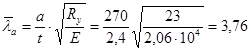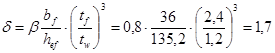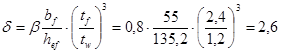 Предельное значение этого отношения находим по табл. 24 СНиПа II-23-81*, в зависимости от значения коэффициента d, учитывающего степень упругого защемления стенки в поясах: