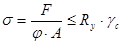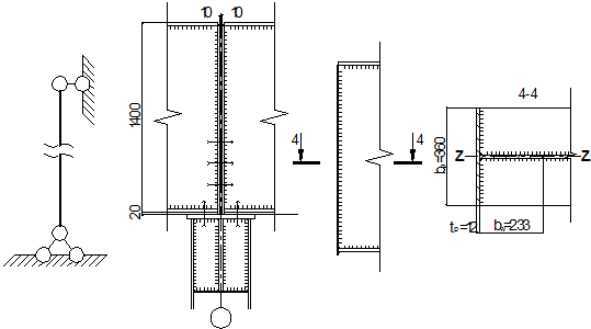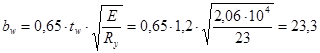 Проверим опорный участок балки на устойчивость из плоскости балки, как условного опорного стержня, включающего в площадь своего сечения опорные ребра и часть стенки балки шириной bw.
