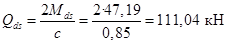 Максимальная поперечная сила, действующая в сечениях подкрановой части колонны