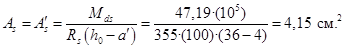 , фактическое армирование подбирается по сортаменту по большему из значений