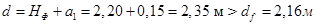 0,25 м – минимальная толщина дна стакана (0,2 м) с учетом подливки под колонну (0,05 м).