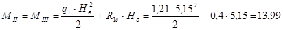 Изгибающие моменты в сечениях колонн (рис. 8.г):