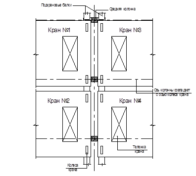 Рис. 7. Схема расположения мостовых кранов для определения опорного давления подкрановых балок на колонну.