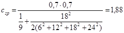 Коэффициент, учитывающий пространственную работу каркаса здания, для сборных покрытий и двух кранах в пролете определим по формуле (2.2) при