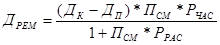 Дрем=((Дк-Дп)·Псм·Рчас)/(1+Псм·Рчас) | ||||