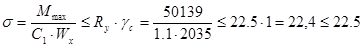 Проверка нормальных напряжений: