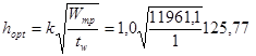 3. Определим оптимальную высоту ГБ из условия наименьшего расхода материала:
