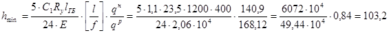 3. Из условия обеспечения требуемой жесткости (прогиба) высота ГБ должна быть не менее hmin