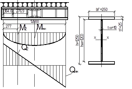 Стык делаем в середине пролета балки, где Мmax=3026,16 кНм и Q=0 кН
