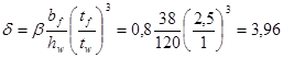 Проверка показала, что устойчивость стенки обеспечена и постановка ребер жесткости на расстоянии а=276,9≥2hw=2*120=240 см возможна.
