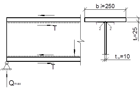 В сварных балках сдвигающую силу приходящуюся на 1 см длины определяют через касательные напряжения: