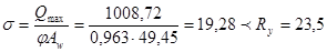 Расчет производится согласно пункту 11.16 СНиП II-23.81 по формулам: