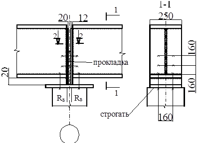 Принимаем ребро 250x12 мм, так как Ар=25x1,2=30≤Артр=28,41 см2