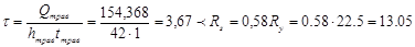 Проверим прочность диафрагмы и стенки колонны на срез: