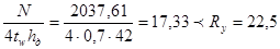 Таким образом с запасом прочности усилие в колонне полностью передается на траверсы, не учитывая прикрепление торца колонны к плите.