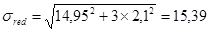 Проверяем условие σred < Ry×gс, 15,39<24.