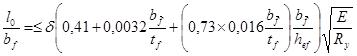 Проверка местной устойчивости сжатого пояса. Для обеспечения устойчивости пояса при его упругой работе необходимо соблюдать следующие условия: