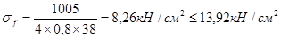 lf= lб–2=40–2=38 см.<85×βf×kf=85×0,8×0,7=47,6 см, требование к макси-мальной длине швов выполнено.