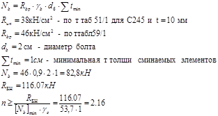 Несущая способность болта на смятие: