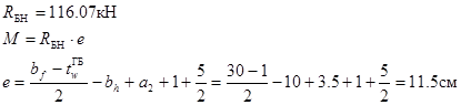 Опорная реакция б.н. Rб.н.=Qmax=116,07 кН